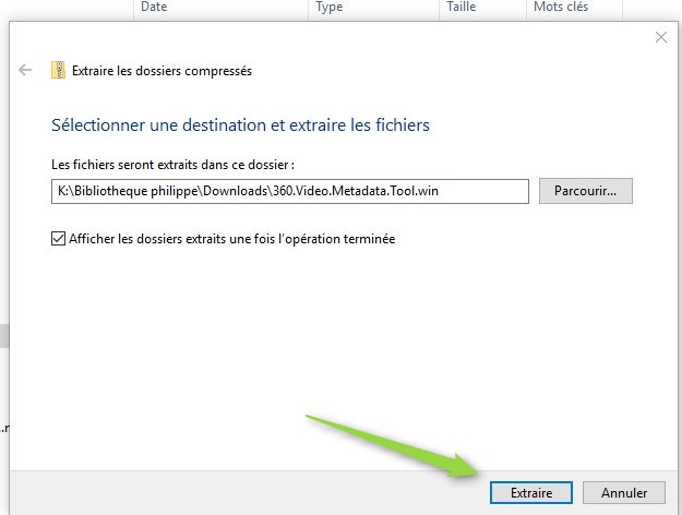 le dossier creer dans K:\Bibliotheque philippe\Downloads\360.Video.Metadata.Tool.win