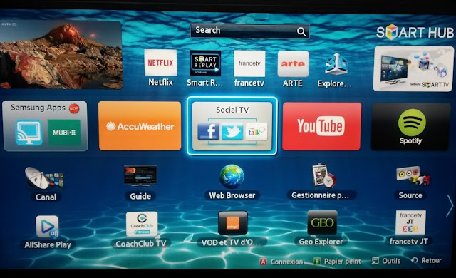 et ensuite installation de accuweather ( météo de Google ..) , instalation de Social Tv ... ? ou il était deja la ? installation de spotify mise a jour du visuel Samsung Apps.