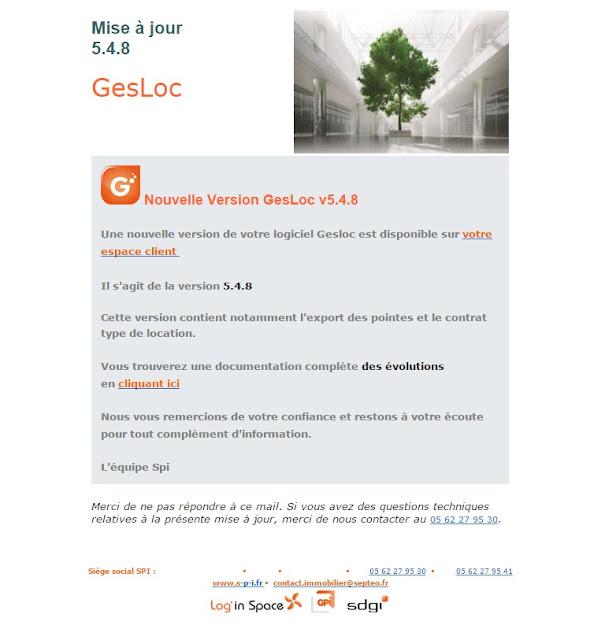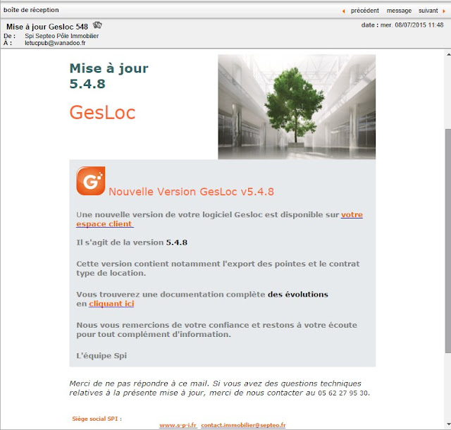 mise a jour 5.4.8 GesLoc logiciel gestion sdgi septeo juillet 2015 recu par mail ce 8 juillet 2015